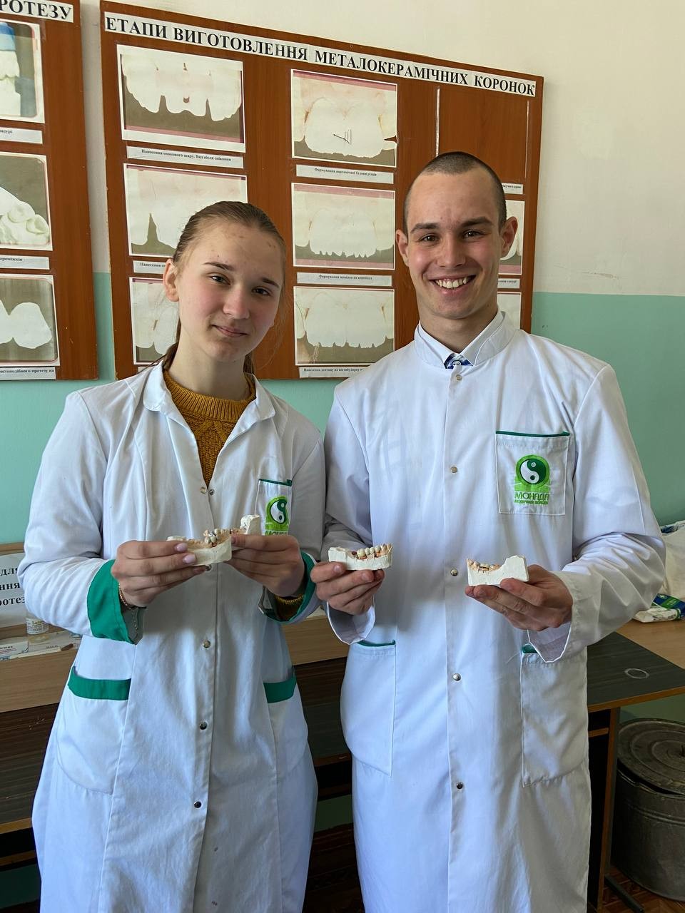 Студенти зуботехнічного відділення МАТВЄЄВА Софія (1ЗТ-1) і ДІДУР Владислава (1ЗТ-2)