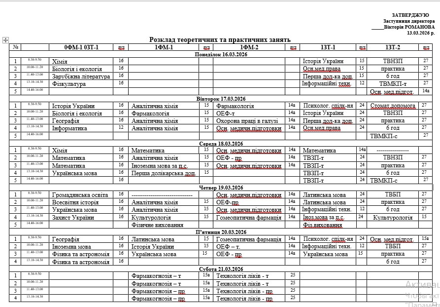 Розклад занять